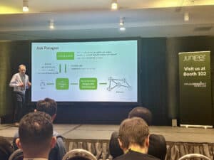 – Guy Davies for his presentation on Host-Based Routing for Telco Cloud Workloads, which was particularly relevant – many of our customers already use a similar approach, but seeing it enhanced by Juniper’s Cloud-Native Router makes it even more compelling.