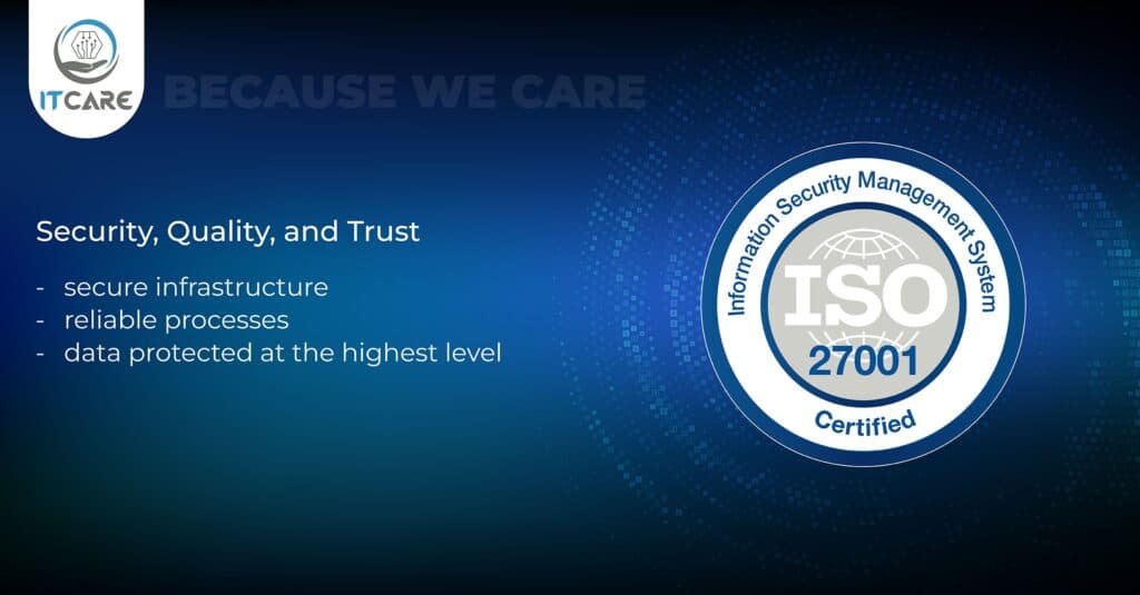 Security, quality, and trust – now officially certified! We’re proud to announce that ITcare has successfully passed the ISO certification process and has officially received the certificate! For us, this isn’t just about meeting a standard – It’s about proving that security, quality, and client trust are embedded in everything we do. What this certification […]