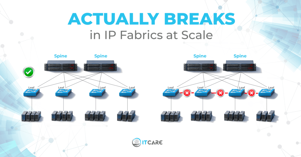 WHAT ACTUALLY BREAKS IN IP FABRICS AT SCALE When we start working with new customers, we often hear a familiar statement: “Our data center is built on a Spine Leaf IP Fabric.” However, once we perform a network assessment, reality sometimes looks different. A common pattern we encounter is the presence of direct links between […]